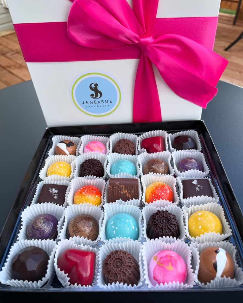 Every artist has a preferred medium, whether it’s clay, oil paints, watercolours, charcoal, stone, or another outlet. Some, however, venture well beyond the typical media. That’s the case for Jane Woodley and Sue Humby, who love creating works of art from chocolate. Yes, that rich, smooth, decadent ingredient that 9 out of 10 people love to indulge in. Chocolate, as they see it, provides the perfect canvas for their love of colour and abstract designs. But their artistry extends beyond the stunning visual exteriors to the indulgent, layered flavour profiles they conjure up for their bonbons, bars, and other delectable treats. Today, you’ll find the creative sister duo working out of their charming chocolate studio in Stanley Bridge, Prince Edward Island. Their adventures in chocolatiering began, however, with a simple booth at the Summerside Farmers’ Market. It was 2018, and the sisters, originally from Ontario, had settled into their new Island home. They decided the time was right to fulfil their lifelong dream of running a food business together by opening a bakery. Shortly after launching, however, Jane developed a gluten intolerance. Not to be deterred, the ambitious duo decided to focus more fully on the chocolates they’d been making alongside their baked goods. The enthusiastic demand for their gorgeous and luxurious creations at the market was all the motivation they needed to go all in on their chocolate-making endeavours.Jane & Sue Chocolate was born. Word quickly spread across PEI – as it is wont to do when Islanders discover a new local treasure – and Jane and Sue found themselves working tirelessly to keep up with demand. At the same time, they were honing their chocolate-making skills through various courses and plenty of hands-on experimentation. Their natural creativity began to shine through as they mastered the exacting standards required to craft exquisite chocolate. Indeed, the inner artist in each of them had been awakened. Soon enough, they found they had outgrown their market booth. A cute white farmhouse in Stanley Bridge beckoned with the promise of a dedicated space for chocolate-making and a retail space all of their own. Located on the stunning North Shore, mere minutes from Cavendish, their new shop and studio quickly became a ‘must-visit’ for chocolate-loving tourists and locals alike during the summer months. As the tourist crowd thinned out, Jane and Sue found themselves gearing up for the biggest chocolate holidays of the year – Christmas, Valentine’s Day, Easter and Mother’s Day. These special occasions opened up a world of creative possibilities for the duo, whose 24-piece advent calendars, Christmas tree ornaments, heart-shaped bonbons, and Easter eggs quickly became coveted gifts sought by chocolate lovers near and far. Fast forward to 2025, and the sisters have settled into a seasonal rhythm along with the staff they’ve hired to help keep everything running smoothly. Never ones to rest on their laurels, however, Jane and Sue’s most recent expansions include an online shop and have also opened a retail shop in Kensington this year. Their online shop, which is open during the cooler months of the year (typically October to May), is an alluring invitation to order works of chocolate art delivered directly to your door or someone you love. It’s proven especially popular for holiday shoppers and for summer visitors seeking to replenish their J&S chocolate stash. As their business continues to grow and evolve, the sisters remain wholly in love with the process of chocolate-making. It perfectly marries their artistic flair with their perfectionist tendencies (a necessary trait for any good chocolatier!). And, of course, as chocolatiers, they also love crafting artworks that elicit joy and are, quite literally, filled with the flavours of happiness. Written by Shannon Courtney for Canada’s Food Island